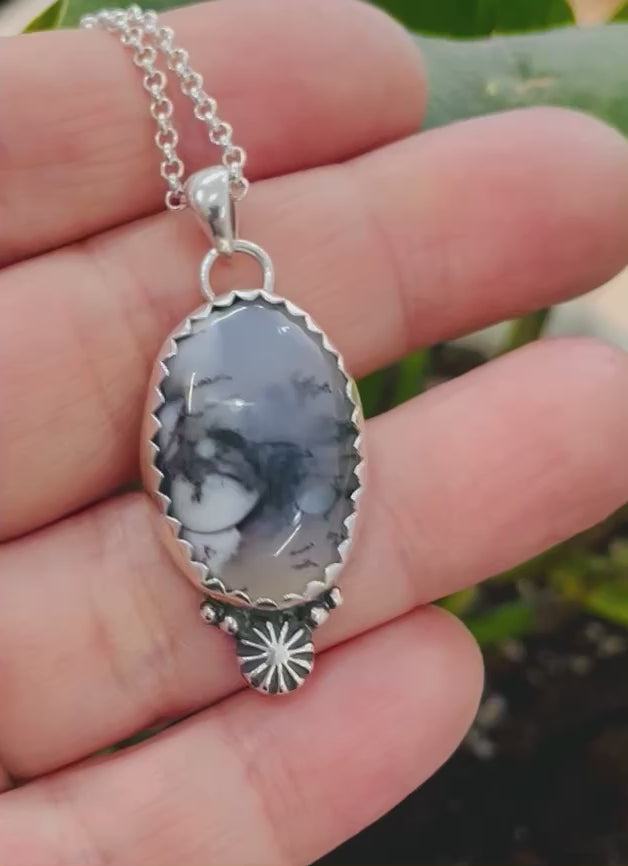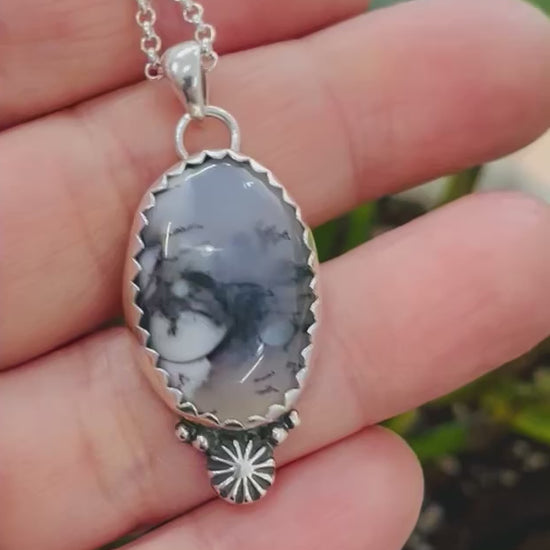Pendentif en argent sterling et Opale Dendrite. Fait avec amour